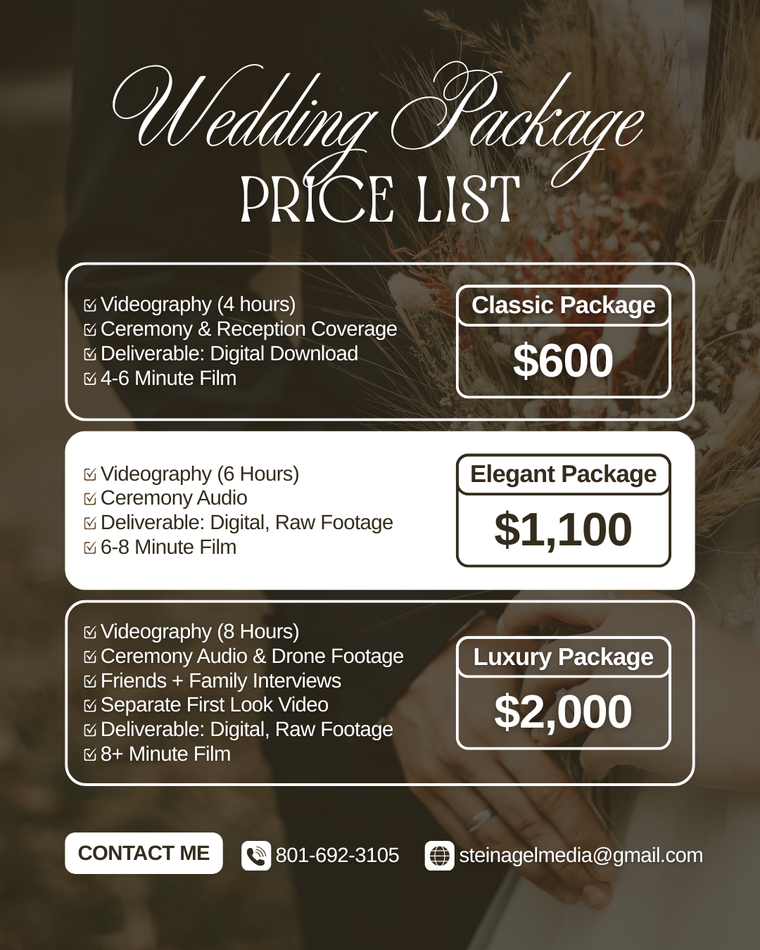 Classic, Elegant, and Luxury Packages